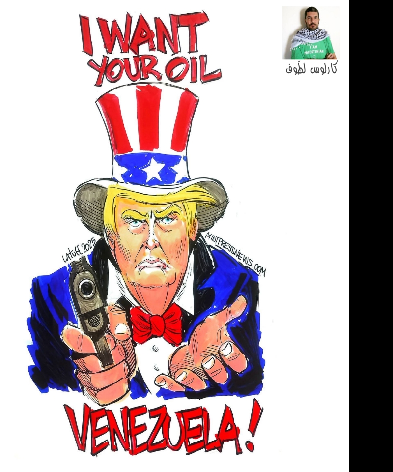 "الكاوبوي الأمريكاني بكل وضوح وإجرام وخسه ونفط""لرسام الكاريكاتير البرازيلي من أصل لبناني كارلوس لطّوف"