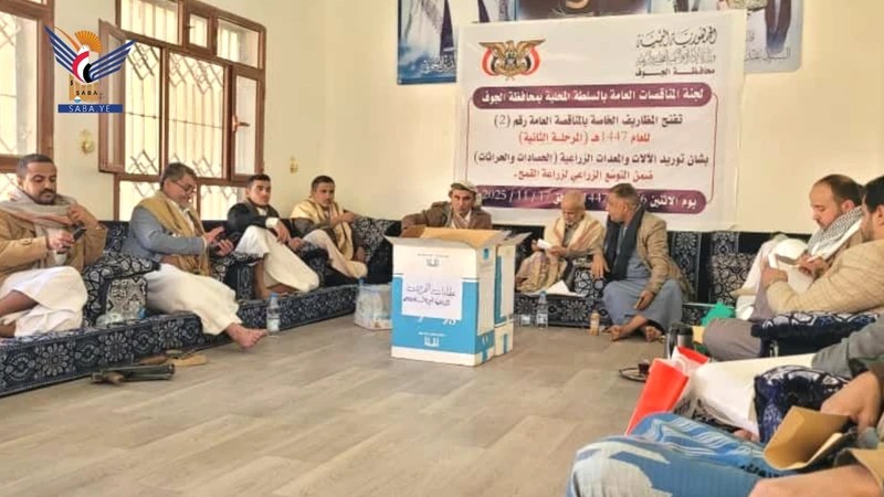 صوت عدن/الجوف/سبأنت: فتحت لجنة المناقصات بمحافظة الجوف في اجتماعها اليوم برئاسة أمين عام محلي المحافظة علي حميد، مظاريف مناقصة مشروع شراء وتوريد معدات وآليات زراعية لحصاد القمح "المرحلة الثانية".ويأتي ...