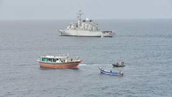 وأضاف البيان أن الفرقاطتين، وخلال دوريات بحرية روتينية، وعلى مدى عدة أسابيع، اعترضتا العديد من المراكب الشراعية المشبوهة، التي "لم تكن تبث عبر نظام التعريف الآلي أو تعرض أية علامات خارجية تدل على هويتها".