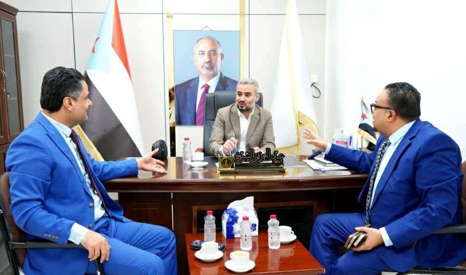 صوت عدن/ متابعات : التقى رئيس هيئة الإعلام والثقافة في الأمانة العامة لهيئة رئاسة المجلس الانتقالي الجنوبي، عبدالعزيز الشيخ اليوم الأحد، بنائب وزير الإعلام والثقافة والسياحة صلاح عبدالله العاقل، ورئيس ...