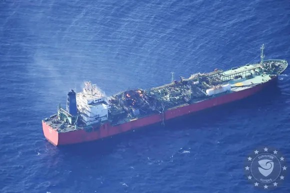 صوت عدن/ أثينا (رويترز): قالت مصادر أمنية بحرية إن هناك عملية جارية لإنقاذ ناقلة غاز البترول المسال (إم.في فالكون) التي لا تزال تشتعل فيها النيران وجنحت في خليج عدن بعد انفجار وقع على متنها في 18 أكتو ...